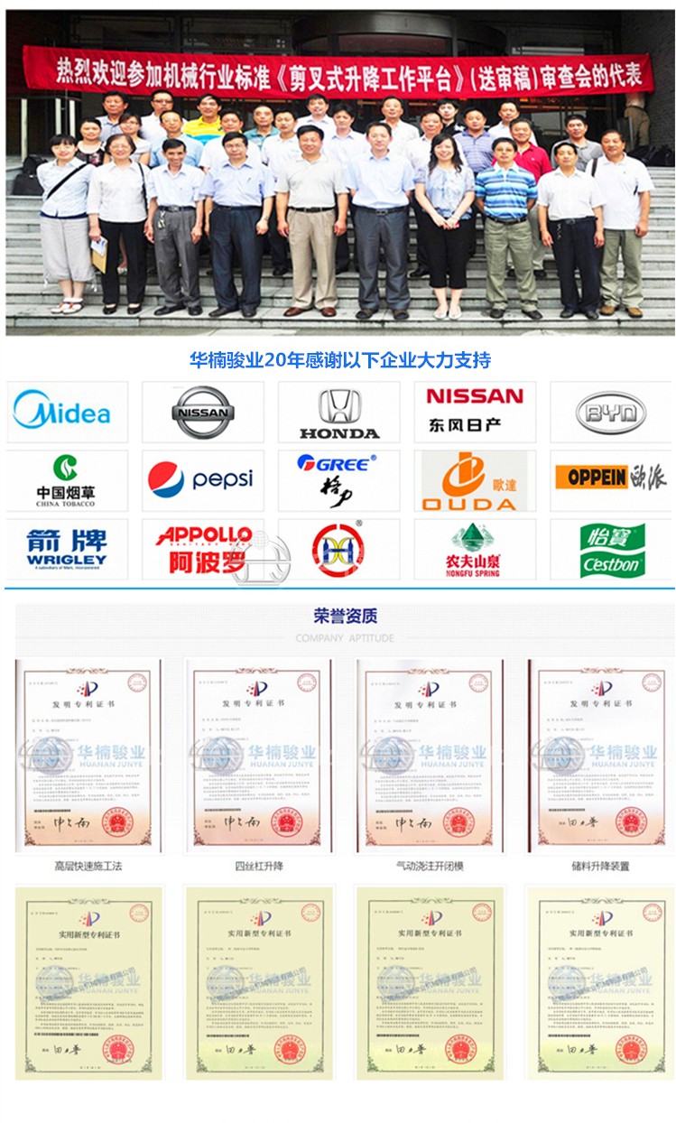企業輸送了高品質的液壓升降作業平臺。為恒大地產、廣州白云國 際會展中心 、廣東現代國際展