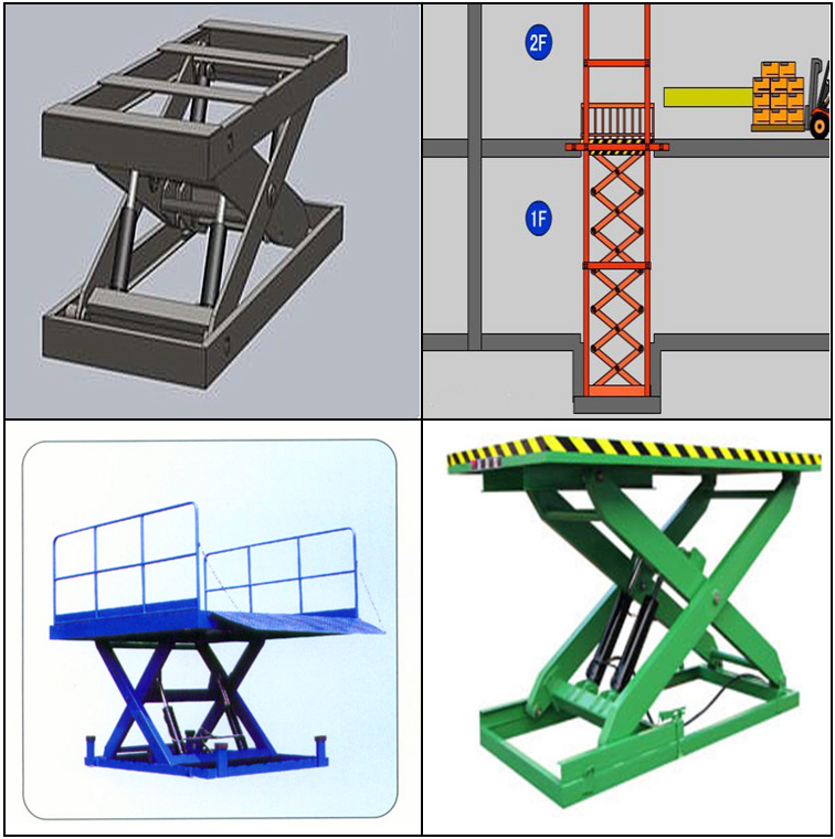 | 平臺部分 | 有封閉式(即轎廂式)或敞開式,兩側裝有導向輪或導靴,平臺底部連接升降油缸或連接升降剪叉型鋼架 |