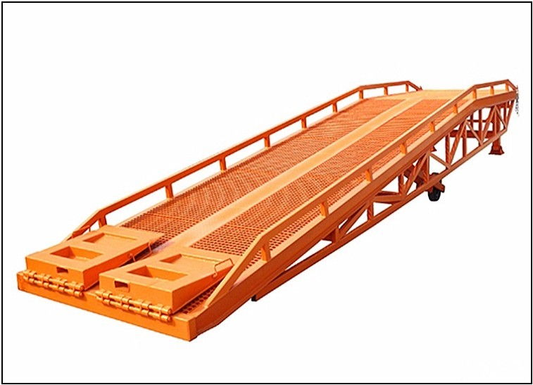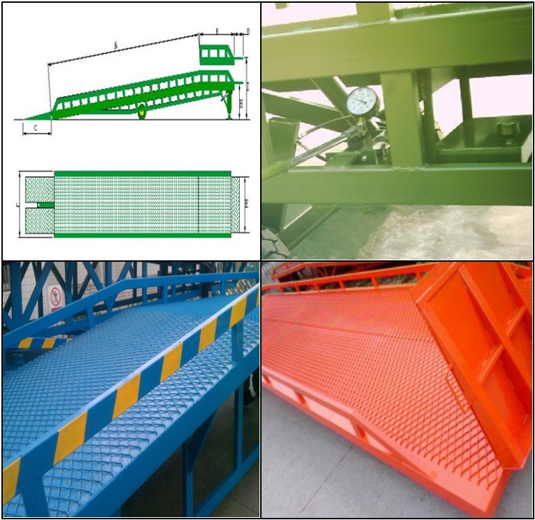 采用特制異型鋼管,臺面采用特制的菱形網格板,防滑(網)板。它的波形鋼格網狀結構,充分保證了良好的防滑性能,使叉車有更好的爬坡性和可操縱性。配置的剎車墊(可有效防止貨車裝卸時液壓登車橋移位)。可調節長度的索鏈能方便地鉤住貨車,使登車橋與貨車始終緊密貼合。 |